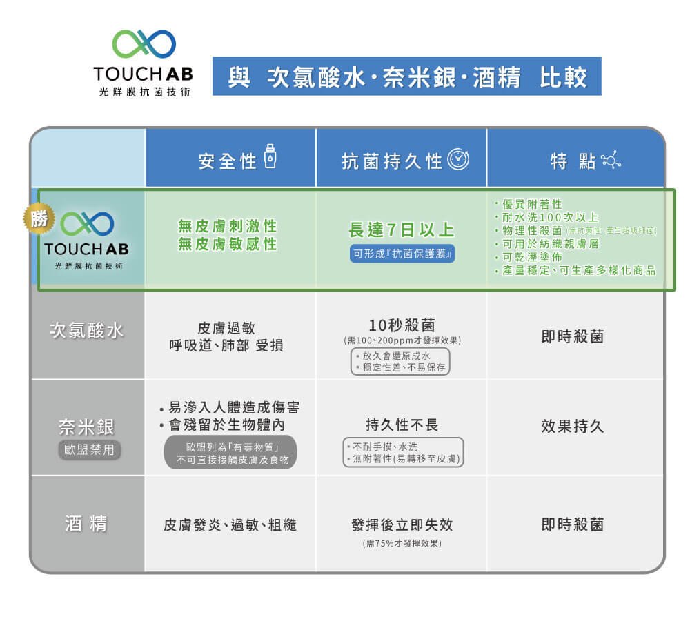 使用TOUCHAB專利抗菌技術