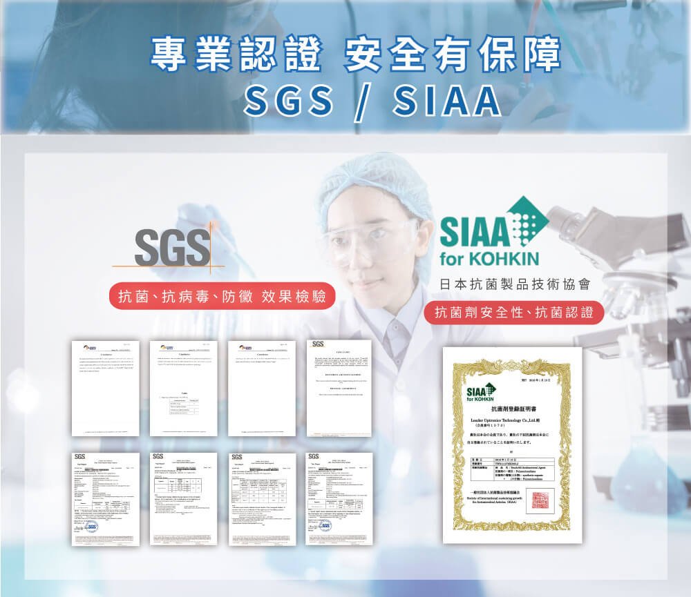 ◆ SIAA(日本抗菌製品協會)安全性認可,0刺激性。
